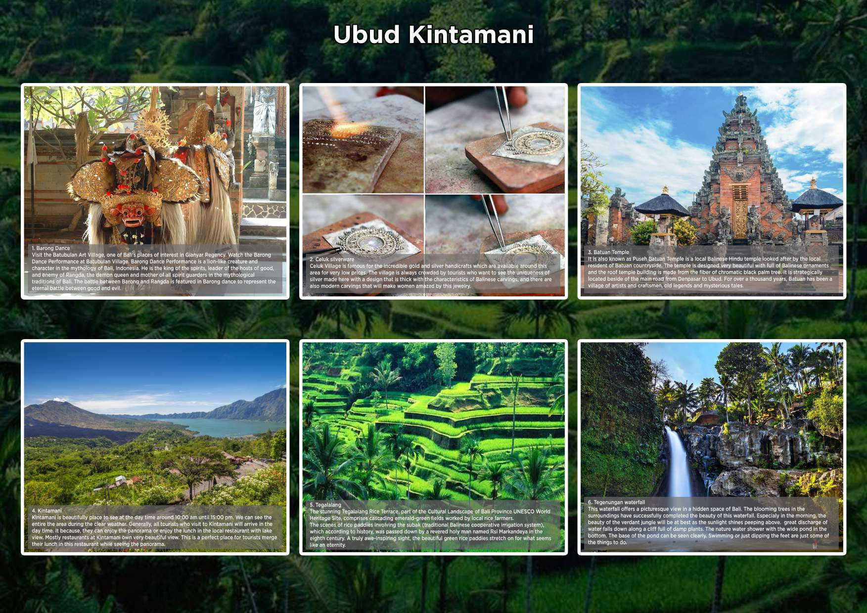 The main Ubud tourist area is concentrated near the Ubud town center, which is packed with hotels, restaurants, markets, activities, and attractions like the Bali Monkey Forest.