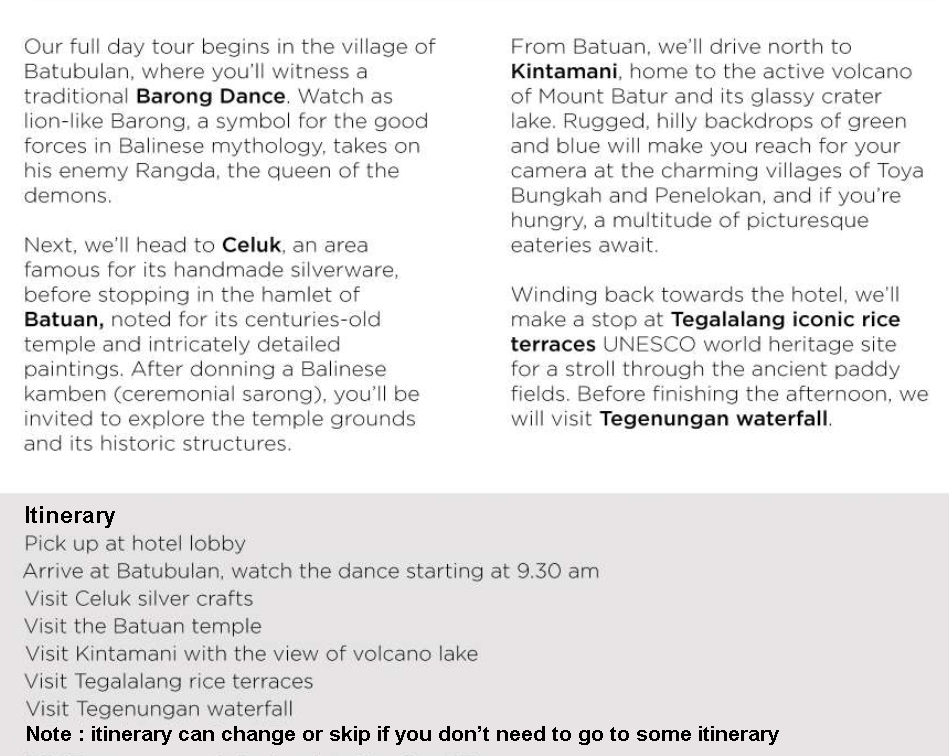 However, the areas surrounding Ubud (like Tegalalang, Gianyar, and Bangli) also have some nice accommodation, and there are lots of waterfalls, temples, rice terraces, and other things waiting to be explored.